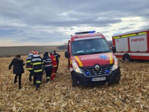 Pompierii au acționat pentru extragerea unui bărbat de 54 de ani, prins într-un heder pentru porumb. Acesta avea membrele inferioare prinse în partea din față a utilajului.