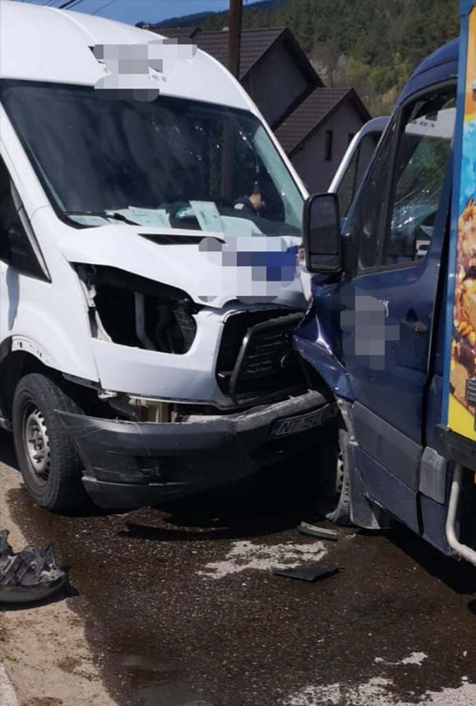 O mașină a unei firme de curierat s-a izbit frontal de o altă autoutilitară care circula din sens opus.