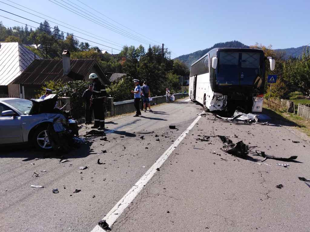 Accident rutier între un autoturism și un autocar în localitatea Poiana Largului
