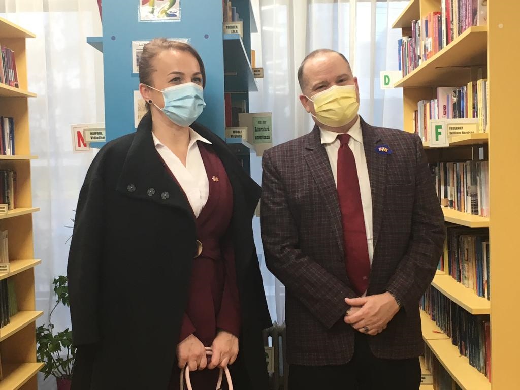 Vizita domnului William OʼConnor, atașatul cultural al Ambasadei SUA în România, la Biblioteca Județeană „G.T. Kirileanu“ Neamț s-a înscris în complexul de activități organizate de Fundația Împreună pentru Solidaritate Socială, care a marcat, astfel, buna desfășurare și finalizarea celui de-al doilea proiect educațional „English Language Program for Youth“, derulat în perioada decembrie 2020 – decembrie 2021, în parteneriat cu Ambasada SUA la București.