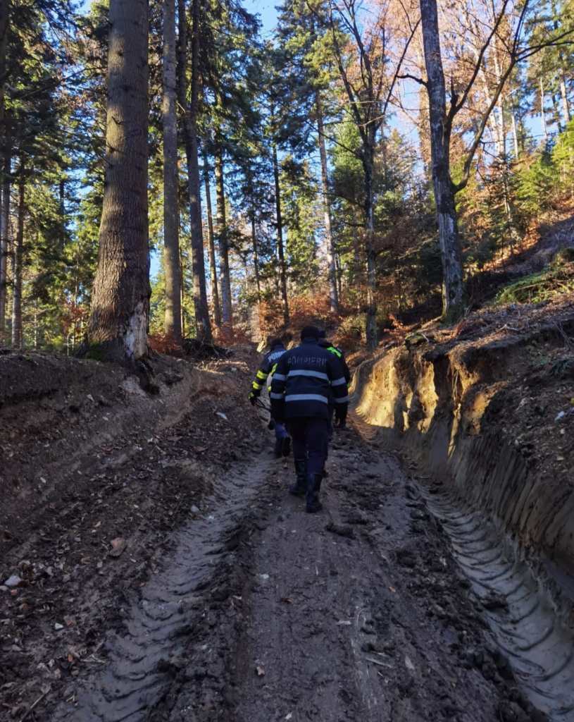 Accesul până la utilajul răsturnat a fost dificil, pompierii transportând pe o distanță de 500 m accesoriile pentru intervenție.
