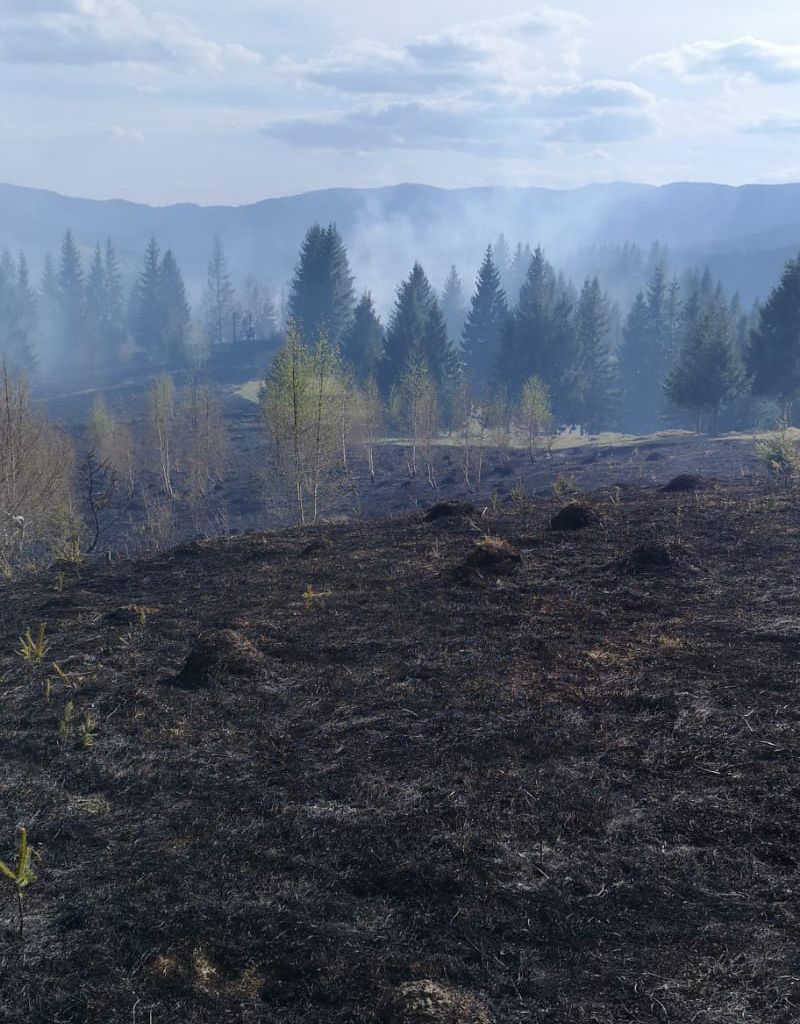 Incendiu de vegetație extins pe 50 de hectare la Borca