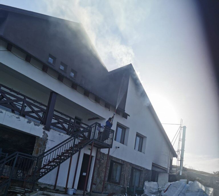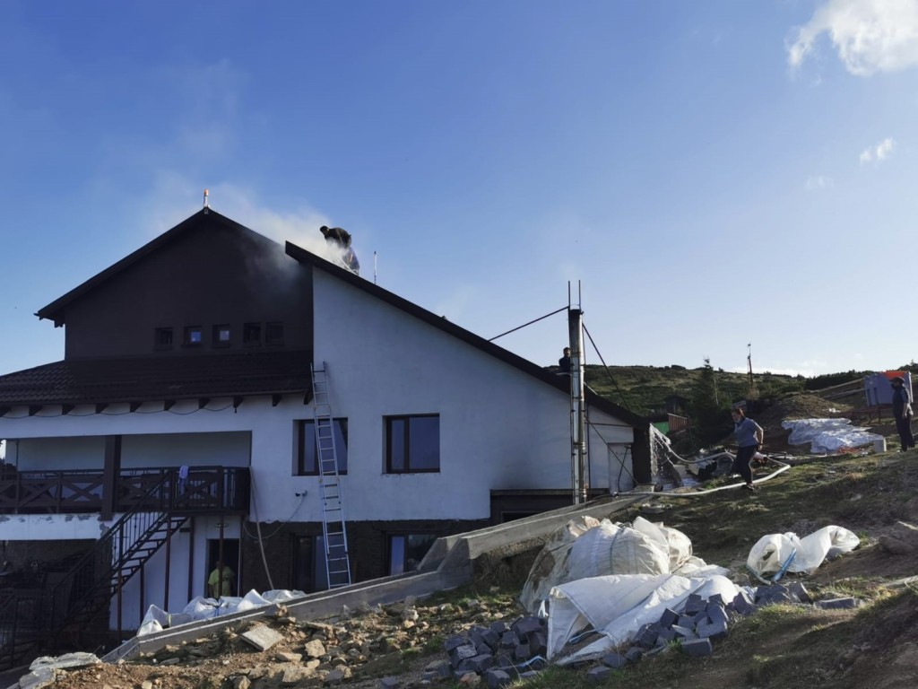 Incendiul se manifesta la nivelul acoperișului cabanei. Personalul de pe locul de muncă a intervenit pentru localizarea și lichidarea incendiului.