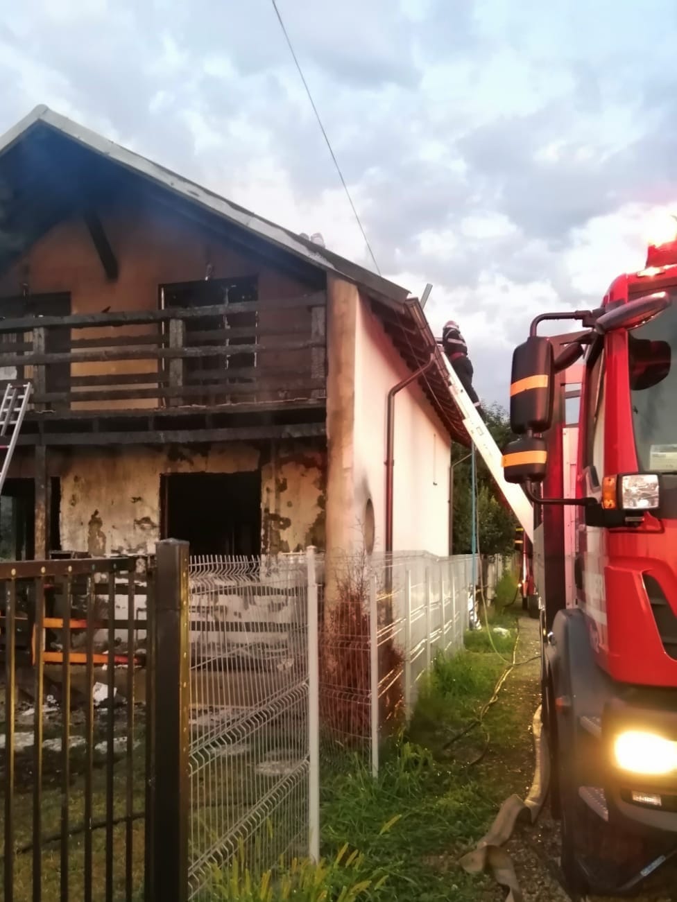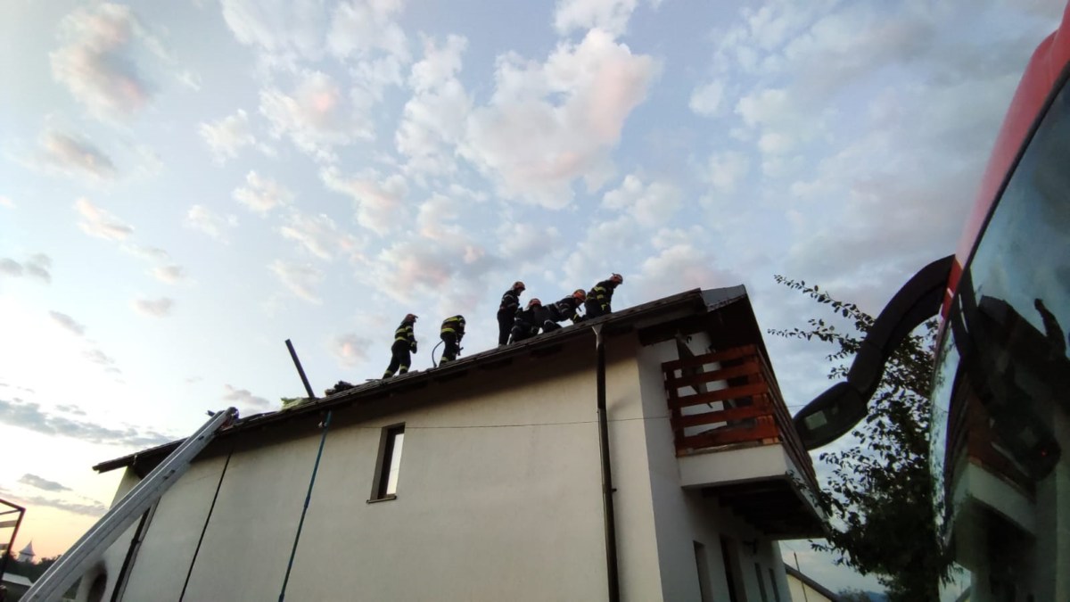 Ajunși la locul solicitării, pompierii au constatat că incendiul se manifesta la nivelul balconului din lemn, la acoperiș și la parterul unei case P+1, cu posibilitatea propagării la întreaga clădire.