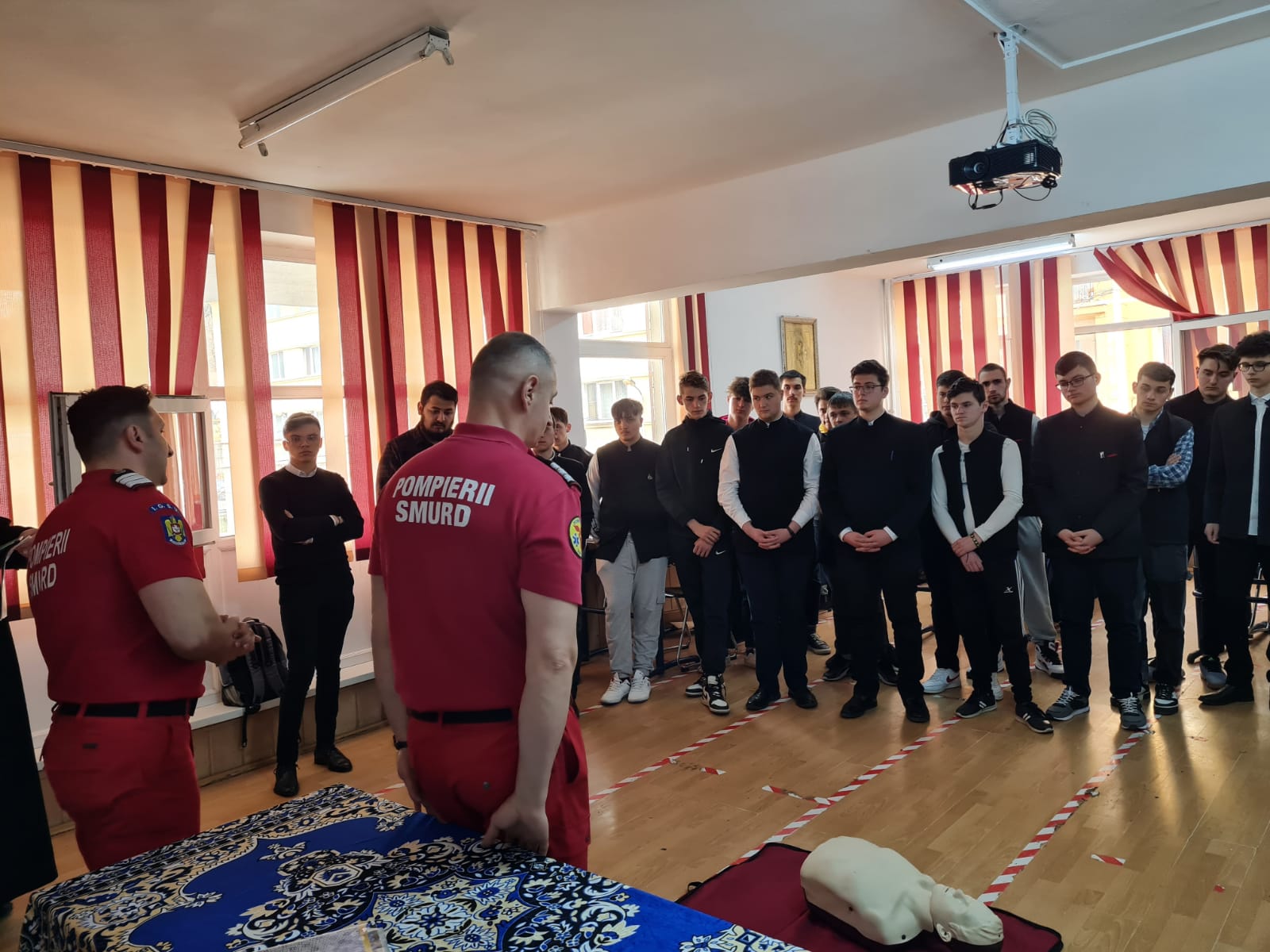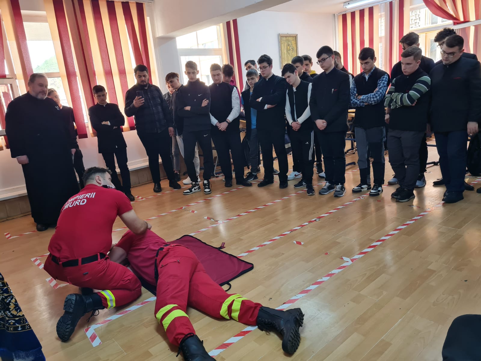Plt.adj. Ștefan Gabi și plt.adj. Pricope Bogdan, pompieri din cadrul Detașamentului Roman, au prezentat elevilor și cadrelor didactice cum pot să acorde primul ajutor. Aceste activități au avut ca scop dobândirea cunoștințelor pentru primul ajutor de bază, precum:
