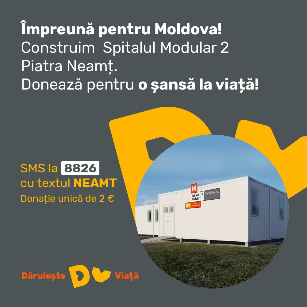 Joi, 4 februarie 2021, incepe constructia Spitalului Modular ATI Piatra Neamt, un proiect initiat de Dăruiește Viață, asociatia care se afla si in spatele initiativei #NoiFacemUnSpital (constructia Spitalului de Copii de la Bucuresti).