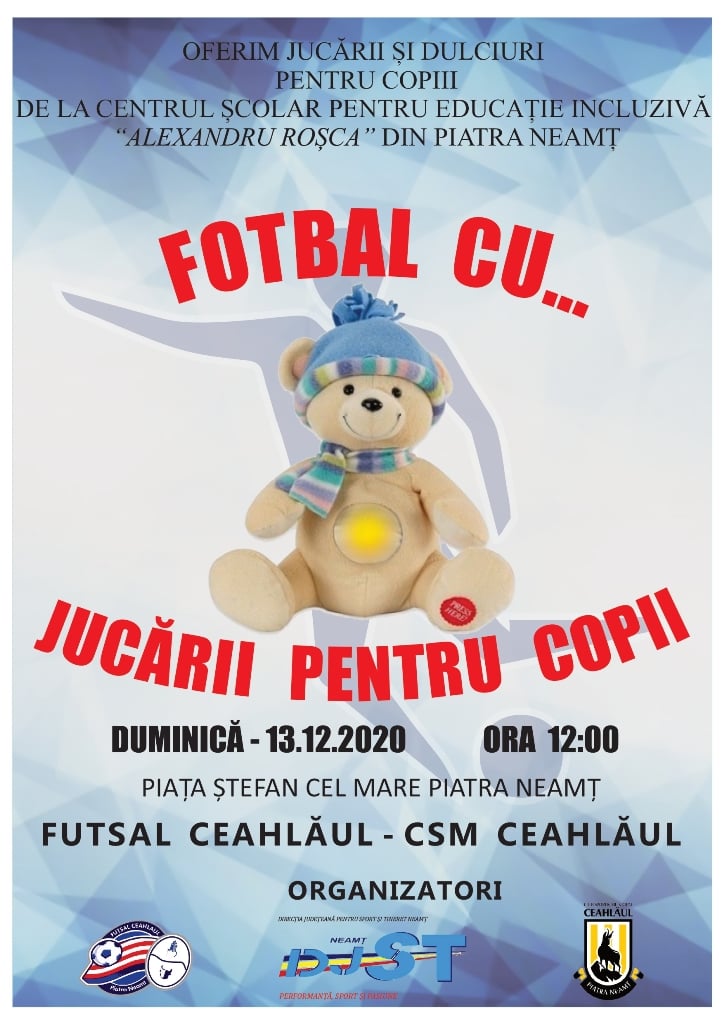 Direcția Județeană pentru Sport și Tineret Neamț, Futsal Ceahlăul Piatra-Neamț și CSM Ceahlăul Piatra-Neamț își doresc să organizeze și în acest an evenimentul „Fotbal cu … Jucării pentru copii”. Dacă în anii 2018 și 2019 evenimentul a avut loc în Sala Ceahlăul din Piatra-Neamț, anul acesta, cu sprijinul primăriei pietrene, au decis să mute evenimentul în stradă, pentru a putea avea publicul aproape.