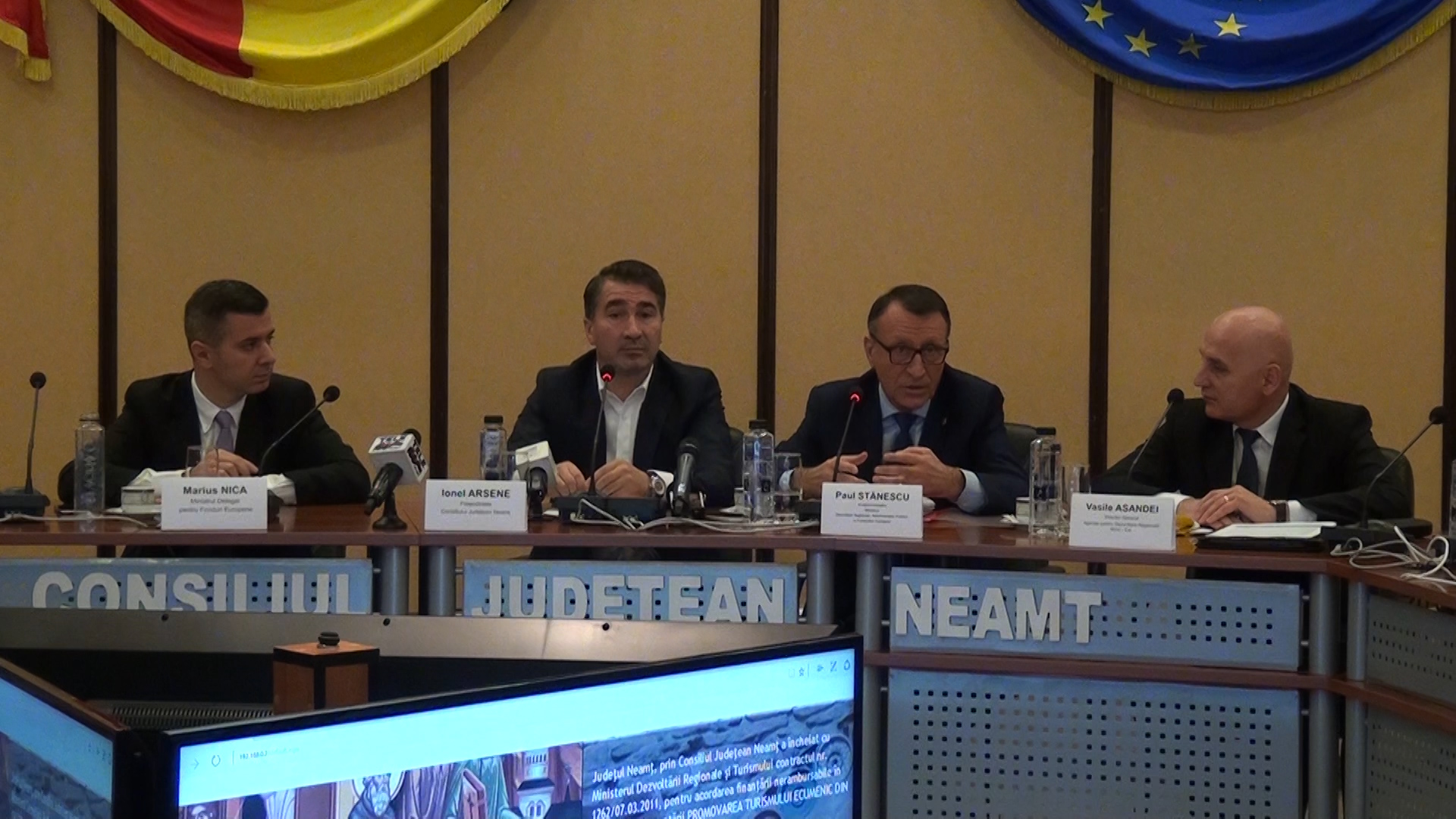 Președintele Consiliului Județean, Ionel Arsene, alături de cei doi miniştri și directorul ADR Nord-Est, Vasile Asandei, au prezentat o serie de investiții extrem de importante pentru județul Neamț.