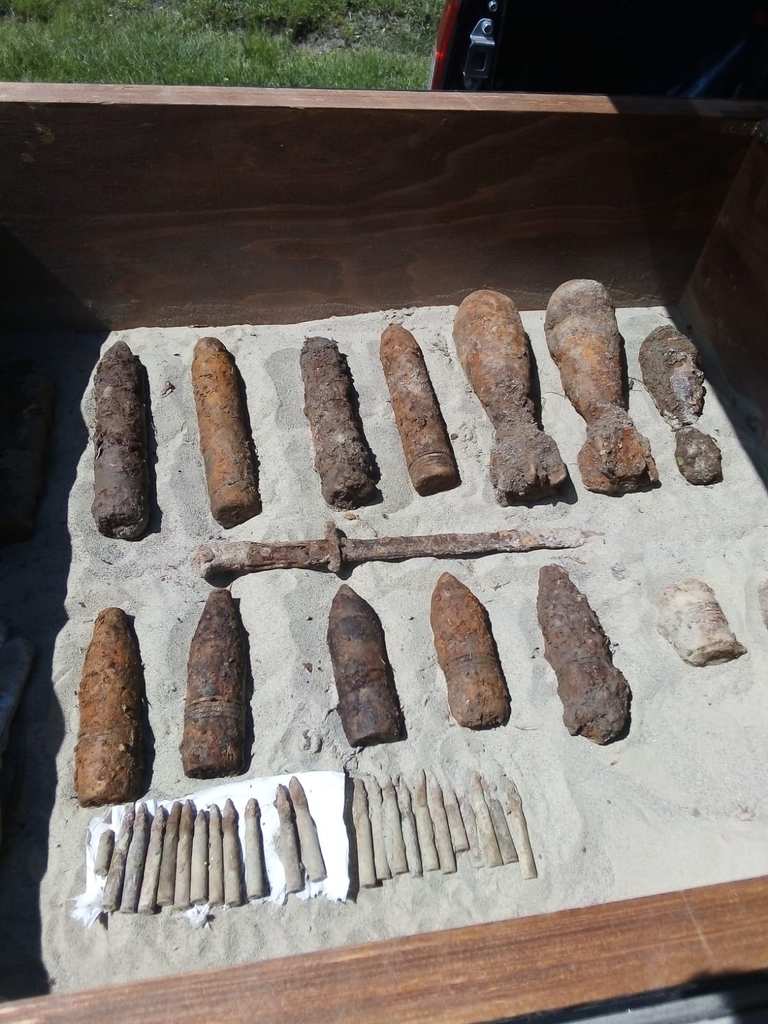 Echipa pirotehnică a verificat zona cu detectorul de metale şi a mai descoperit 2 lovituri de aruncător cal. 82 mm, 1 lovitură de aruncător cal. 60 mm, 2 proiectile explozive cal. 47 mm, 4 proiectile perforante cal. 47 mm, o grenadă de mână kiser și 22 cartușe cal. 7,92 mm.