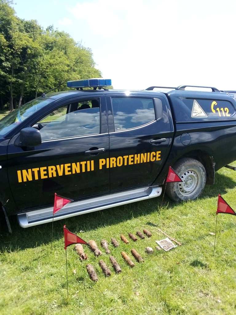La locul intervenției s-a deplasat echipa pirotehnică cu o autospecială pentru intervenții pirotehnice, care au ridicat 2 proiectile explozive cal. 47 mm și o lovitură de aruncător cal. 60 mm provenite din Al Doilea Război Mondial, în vederea depozitării şi, ulterior, a distrugerii. Muniția a fost descoperită de un bărbat, în vârstă de 42 de ani, cu ajutorul unui detector de metale deținut legal.