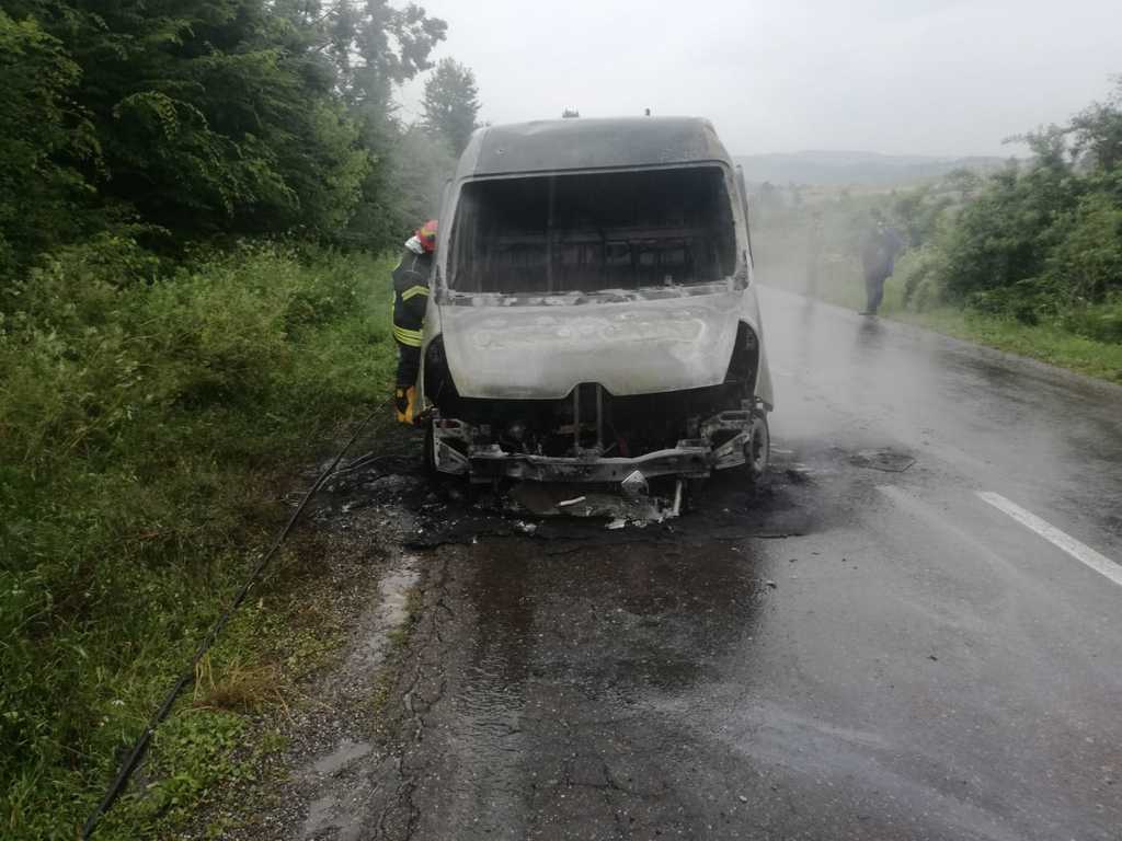 O autoutilitară încărcată cu vin a luat foc la Tazlău
