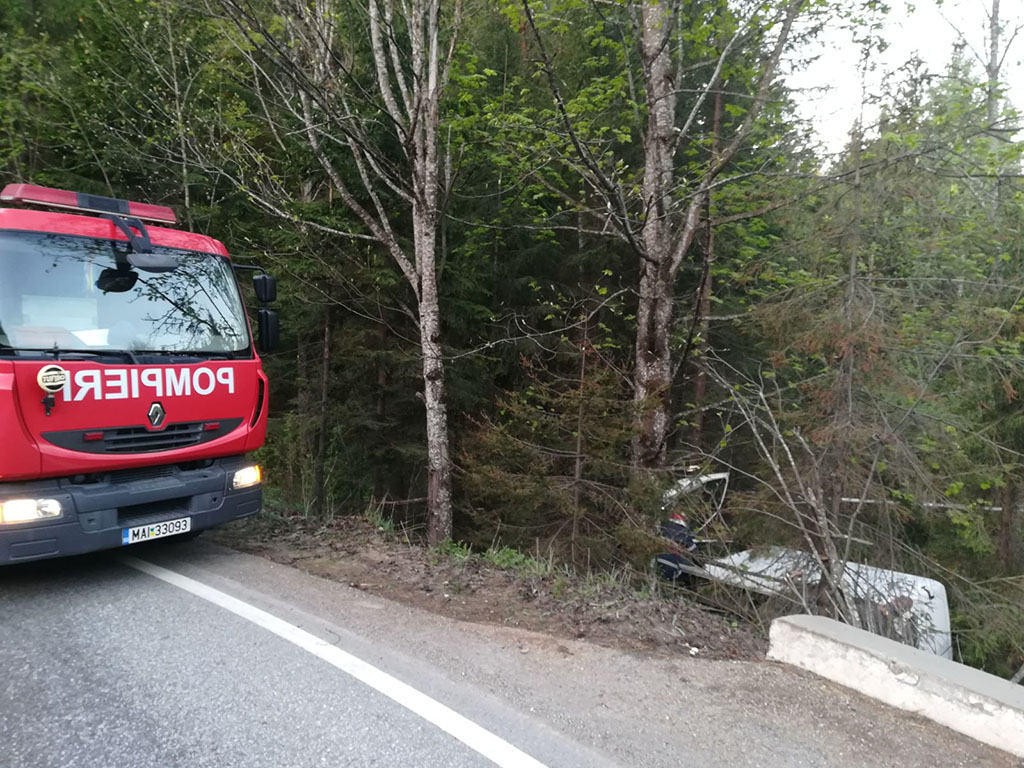 O autoutilitară s-a răsturnat pe raza comunei Pipirig. Două persoane au reuşit să iasă din maşină.