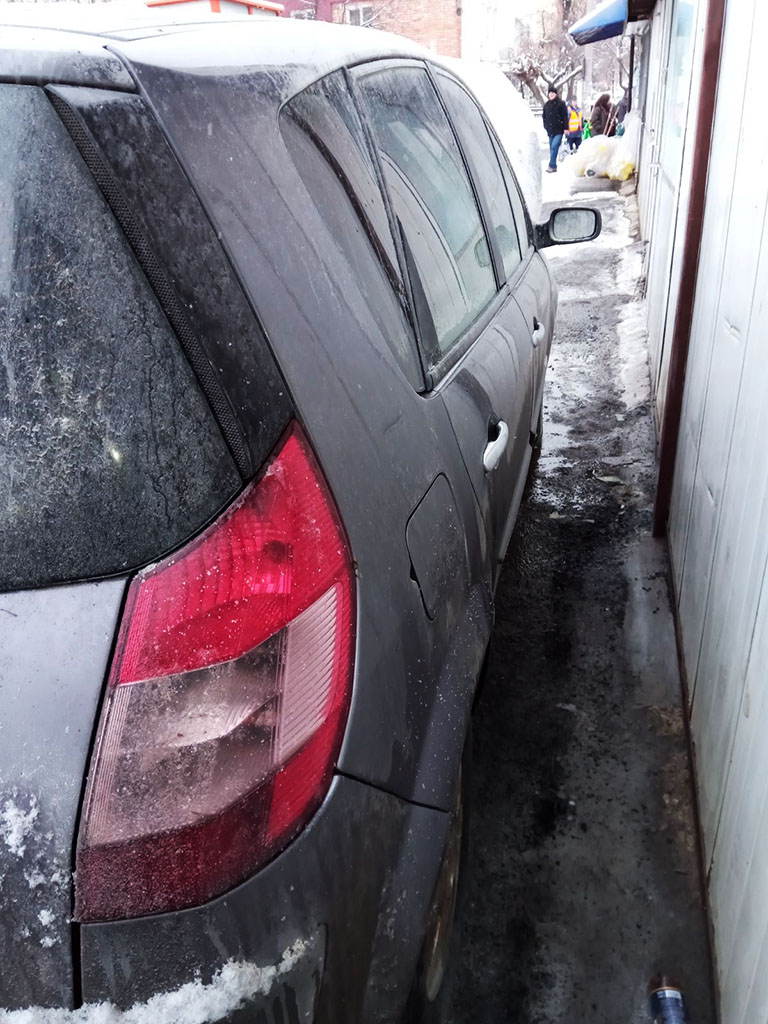 Autoturismul se afla parcat lângă peretele lateral al pieței, din cartierul Dărmănești, la aproximativ jumătate de metru.