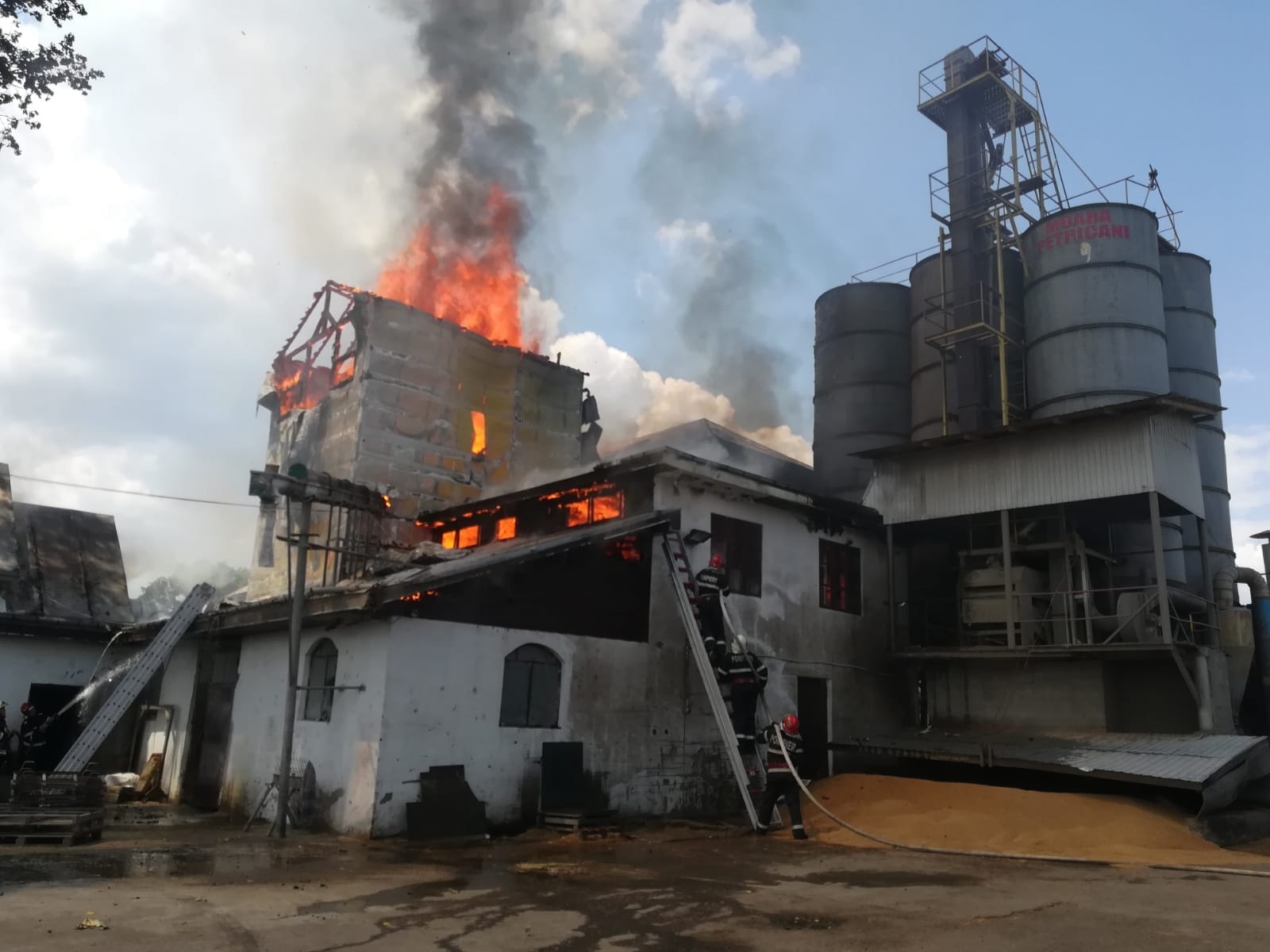 Pagube uriaşe în urma incendiului de la moara din Petricani