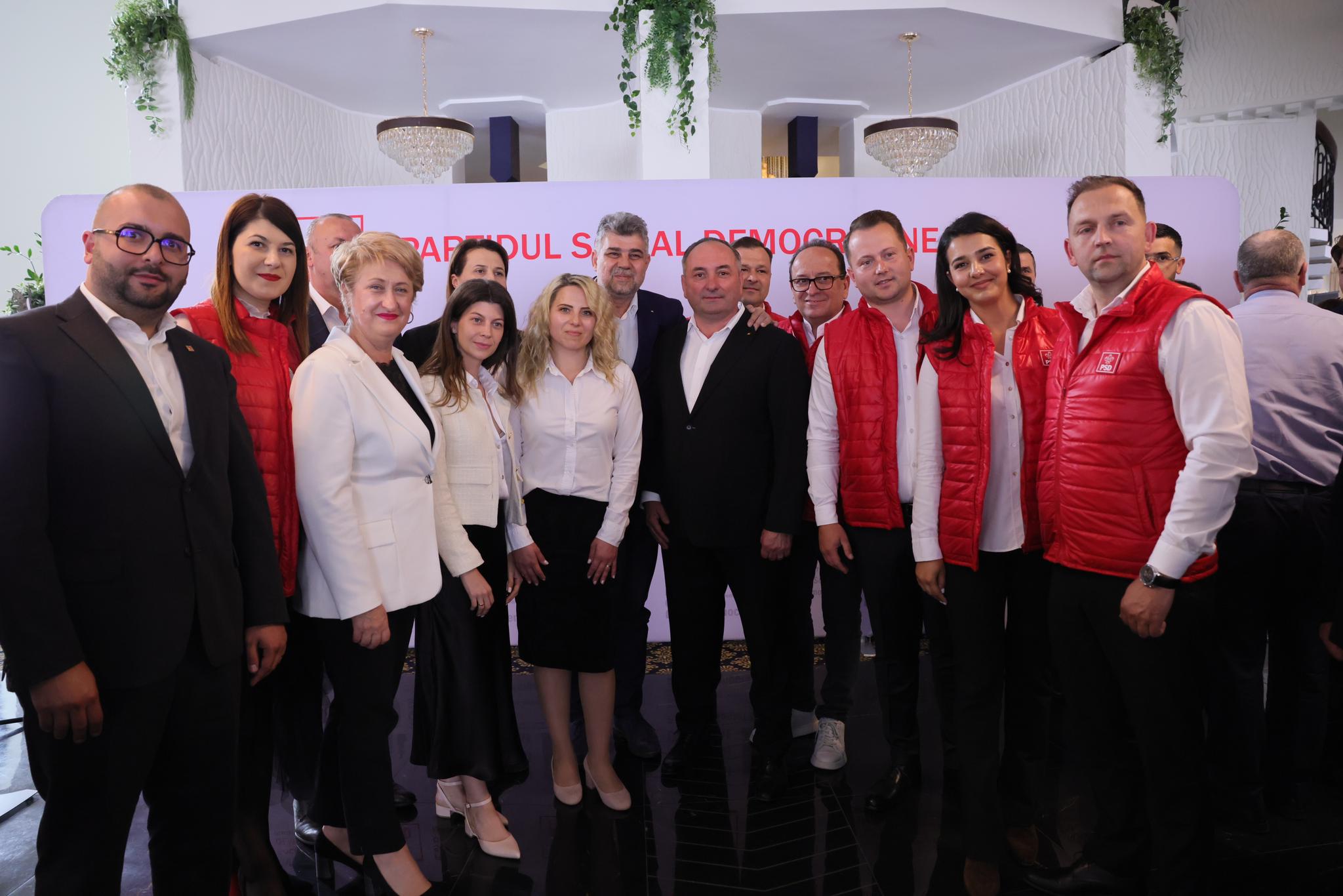 La invitația lui Daniel Vasilică Harpa, liderul social-democraților nemțeni și candidat pentru președinția Consiliului Județean (CJ) Neamț, au participat premierul Marcel Ciolacu- președinte PSD, Paul Stănescu- secretar general PSD, miniștrii Alexandru Rafila și Adrian Câciu, eurodeputatul Mihai Tudose și Alexandru Stoica-secretar de stat la Ministerul Dezvoltării.