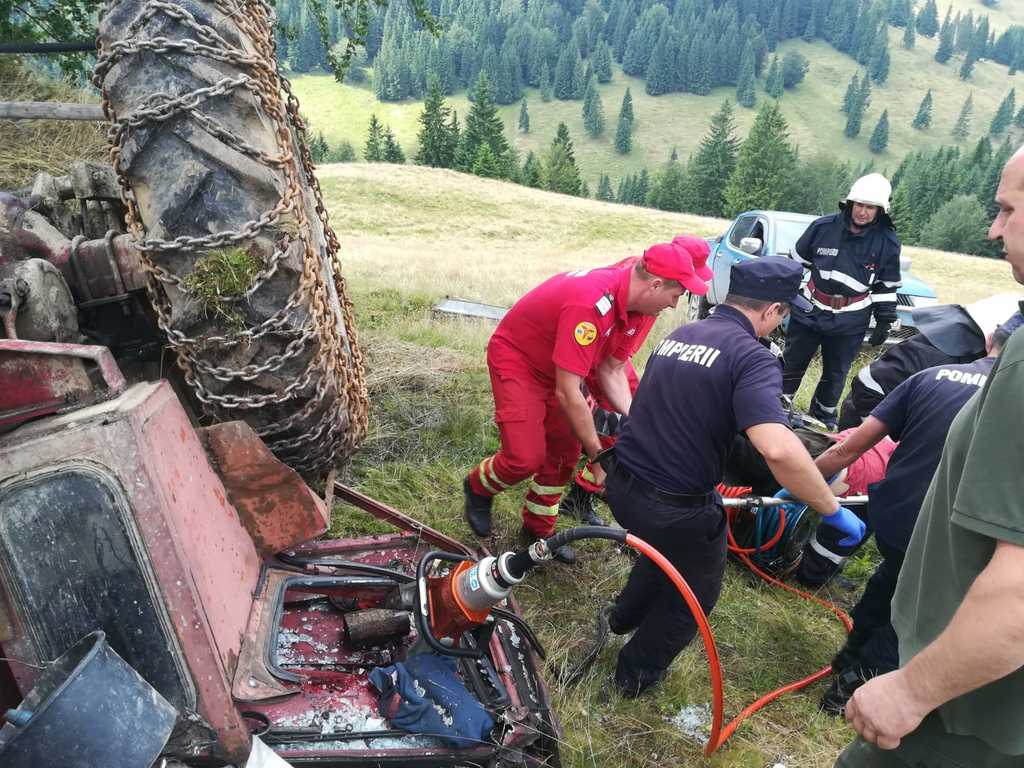 Ajunși la locul evenimentului, pompierii militari au constat că sub utilaj era surprins un bărbat de aproximativ 54 de ani, care prezenta leziuni incompatibile cu viața.