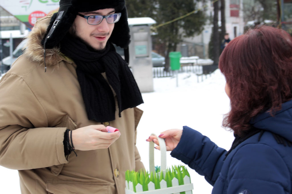 La ora 13:00, membrii Clubului de lectură, însoțiți de mai mulți bibliotecari, inclusiv de la Secția „Vasile Conta“ Mărăței, au ieșit pe esplanada Bibliotecii și, după un moment petrecut în fața bustului poetului Mihai Eminescu, au oferit trecătorilor răvașe pe care erau transcrise fragmente din poezii celebre.